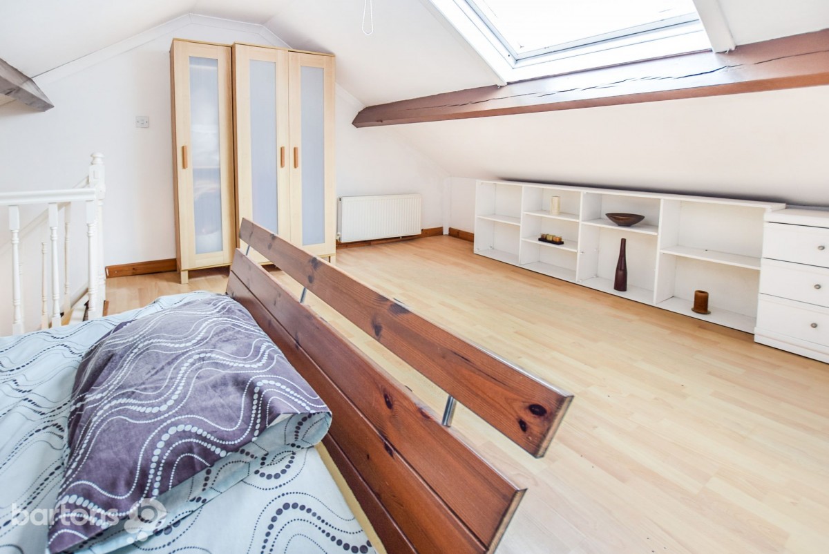 Upstairs, three well-proportioned bedrooms offer comfortable accommodation, complemented by a contemporary family bathroom. A particular highlight is the useful loft conversion, currently used as a bedroom, providing additional flexible space that could suit a home office, playroom, or guest accommodation.