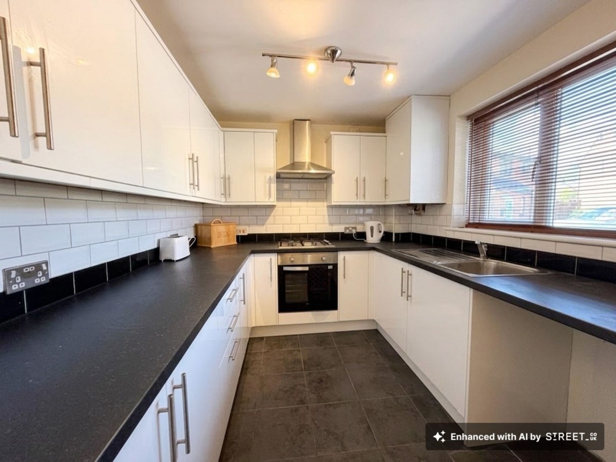 The spacious lounge reception is bright and welcoming, providing a versatile living area with seamless through access to the rear garden, creating an inviting space for relaxation or entertaining. The contemporary kitchen is finished in sleek gloss white, featuring ample storage solutions and integrated cooking appliances to cater for all culinary needs.