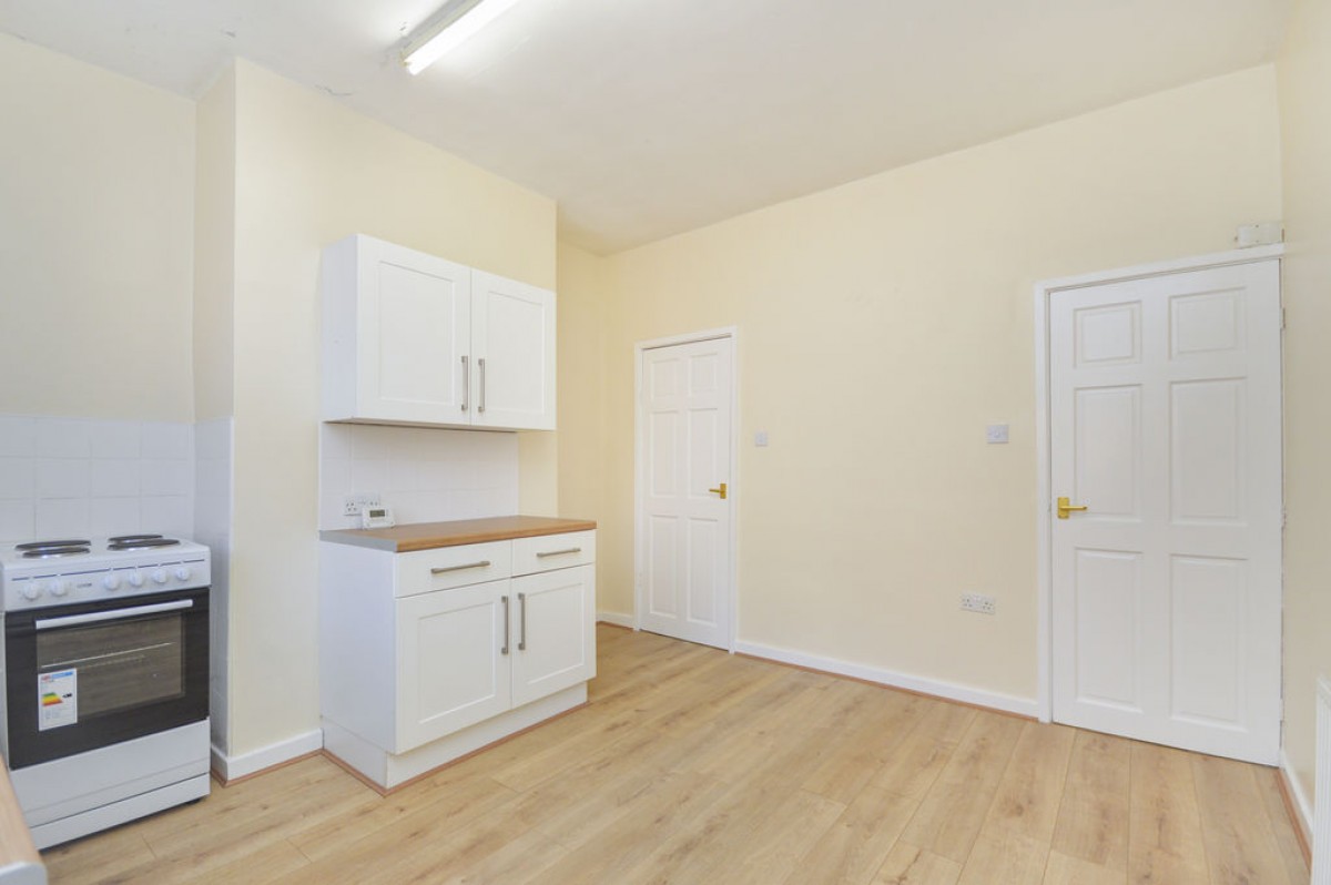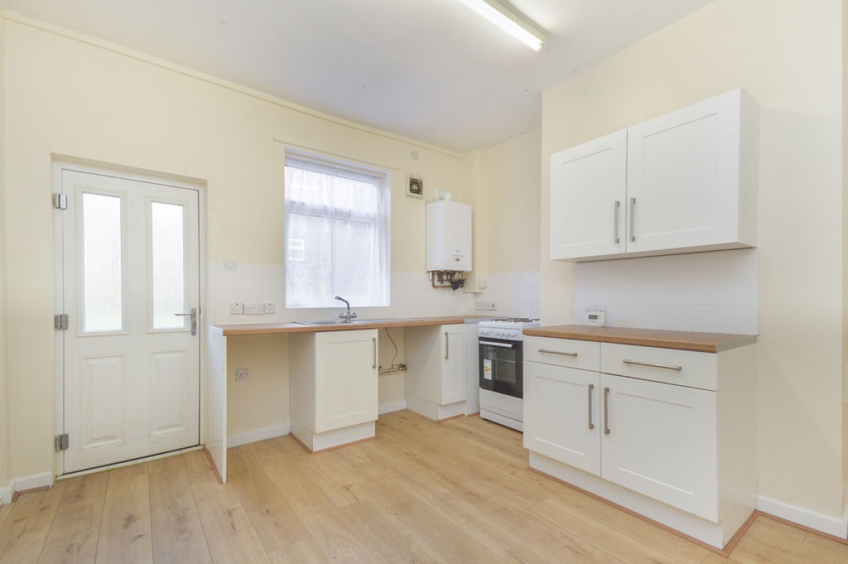 The accommodation briefly comprises a neutrally decorated Lounge with laminate flooring, leading through to a bright and spacious Kitchen Diner. The Kitchen features fitted units, a freestanding cooker, ample space for a dining table, and useful under stairs storage.